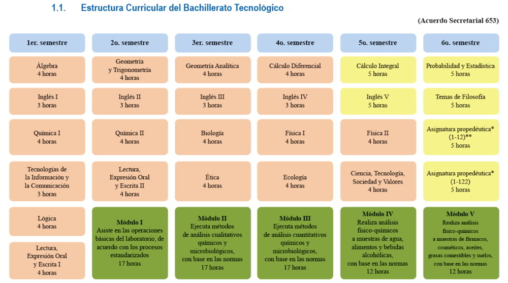 La formación profesional se inicia en el segundo semestre y se concluye en el sexto semestre desarrollando en este lapso de tiempo las competencias: asiste en las operaciones básicas del laboratorio, de acuerdo con los procesos estandarizados, ejecuta con base en las normas: métodos de análisis cualitativos químicos y microbiológicos, métodos de análisis cuantitativos químicos y microbiológicos, análisis físico-químicos a muestras de agua, alimentos y bebidas alcohólicas y análisis físico-químicos a muestras de fármacos, cosméticos, aceites, grasas comestibles y suelos.